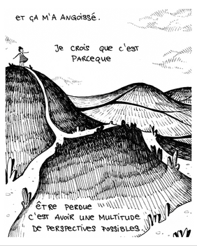 Plongée en apnée : récits en forme d’égo trip. Dans une volonté de simplicité, avec le projet «Diary», je balade mon petit alter égo dessiné. Expériences vécues, réflexions et questionnements. Entre quête identitaire, observations des rapports humains et recherche des angles morts, j’ai envie de parler des choses simples que l’on oublie de nommer. Je m’impose authenticité, honnêteté et rapidité avec des dessins simples, noir et blancs pour la plupart, un croquis rapide,